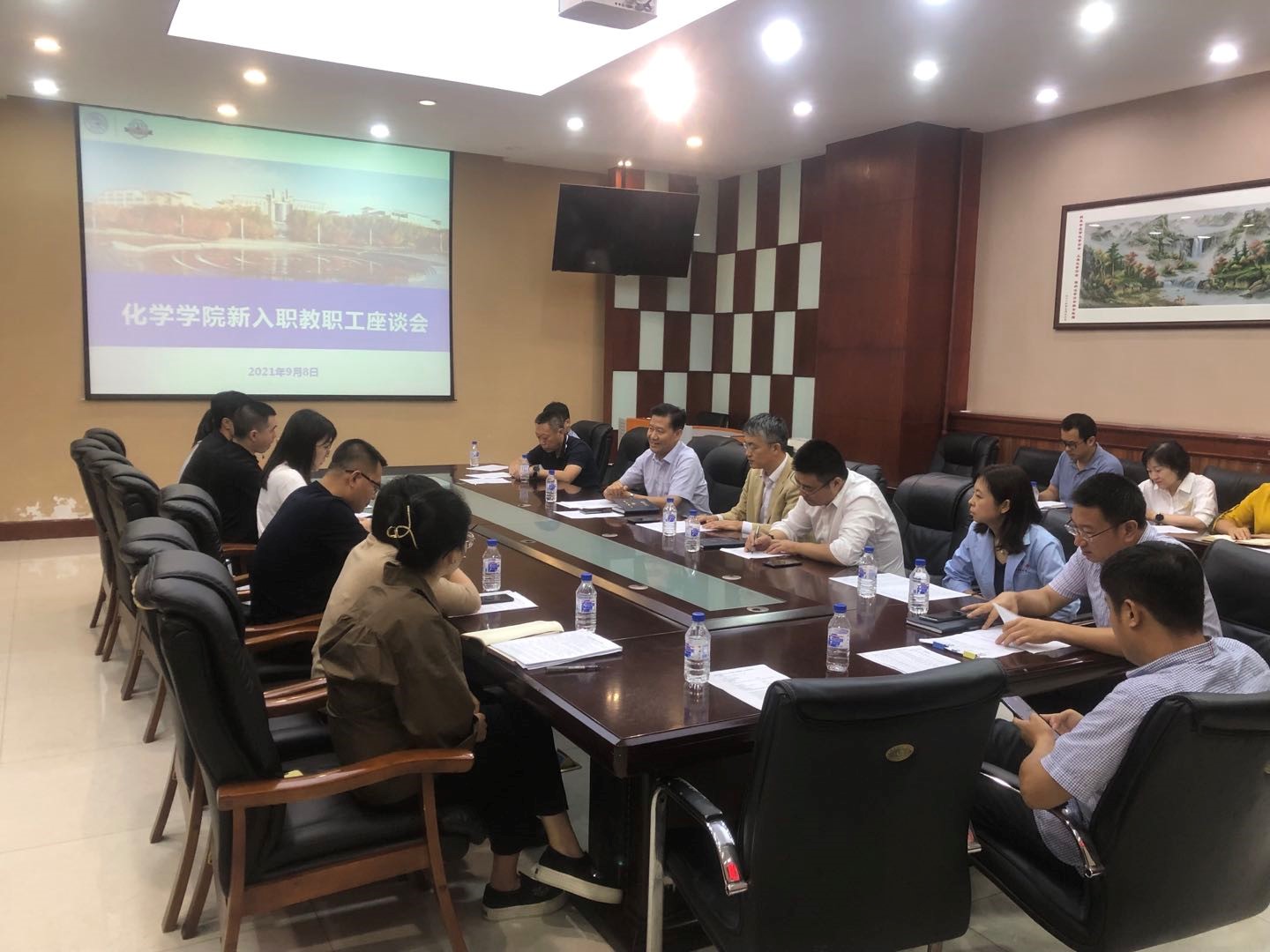 在第37个教师节来临之际,为激励广大教工“守教育报国初心、担筑梦育人使命”。91视频于9月8日下午举行2021年新入职教职工交流座谈会,对新入职的18位教职工表示欢迎。91视频党委书记宁德宽、院长吕中元、91视频部分领导班子成员、系所中心和重点实验室主管领导、部分教工支部书记和教师代表参加了座谈会。座谈会由由胜利副书记主持。