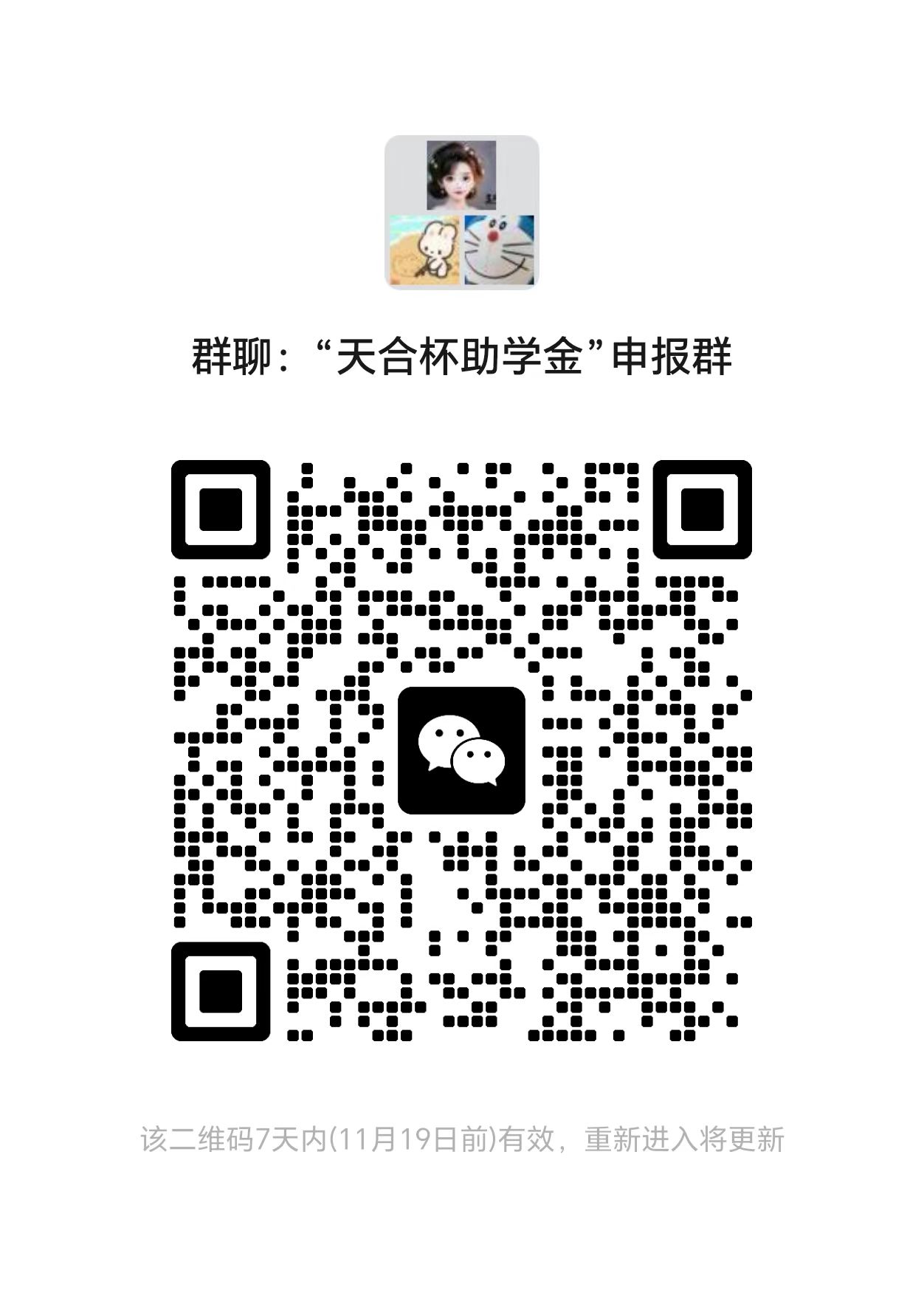 1.个人申请。学生本人自愿报名,11月14日12:00前使用个人邮箱账号登录“一张表”平台(//one.sp91.net),在“研究生评奖评优管理”-“研究生评奖评优申报”栏,点击【新增】进行【天合杯助学金】信息填报,同时扫码入群。