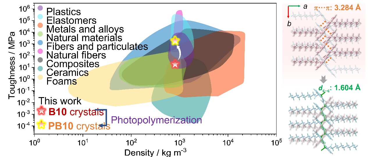 有机晶体材料在柔性电子、仿生器件等领域展现出巨大应用潜力,然而其力学性能的固有矛盾长期制约着实际应用——高强度往往伴随着脆性断裂,而优良的柔韧性又通常以牺牲承载能力为代价。这一“强度-韧性权衡”难题成为该领域发展的关键瓶颈。针对这一挑战,91视频-性视频-国产视频