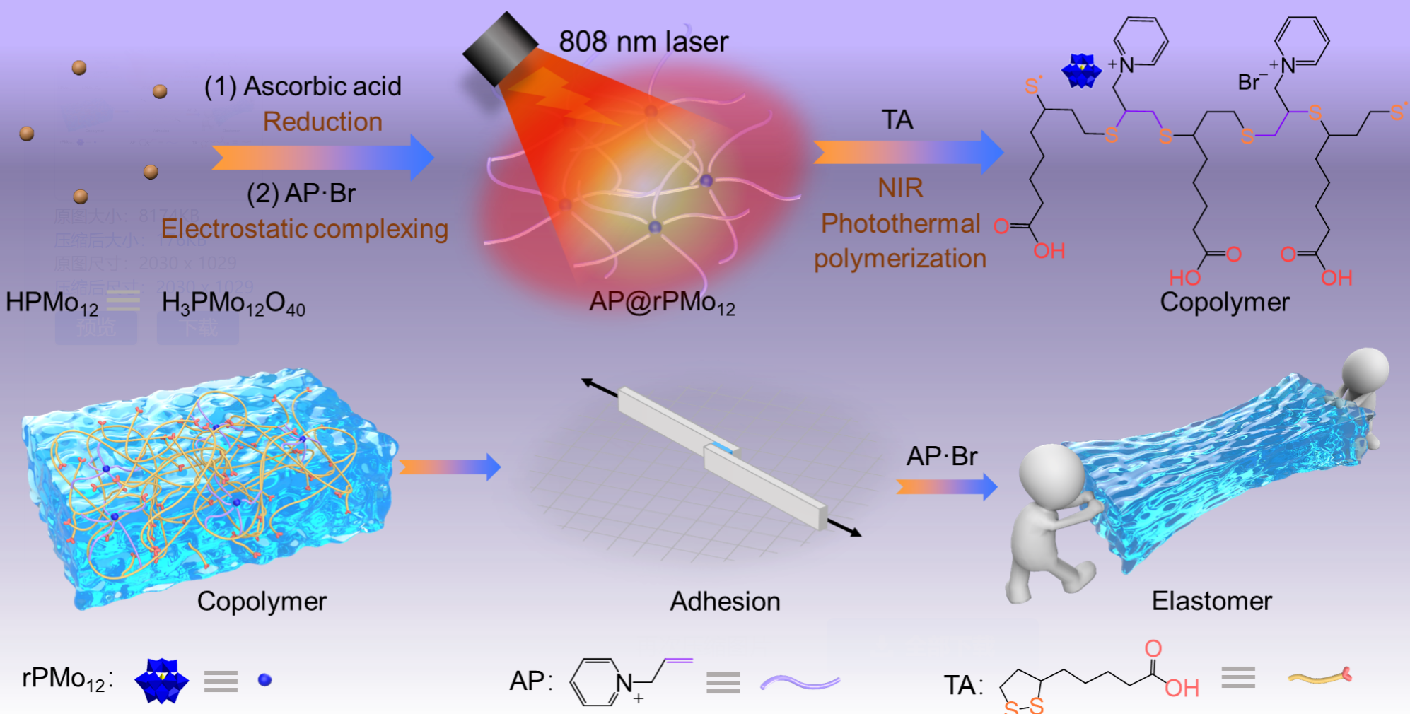 图1 基于多金属氧簇交联剂的硫辛酸光热聚合设计策略。